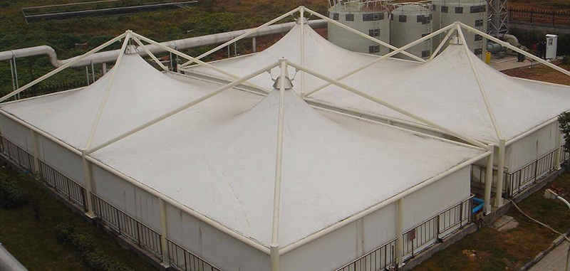 為關(guān)愛人民,構(gòu)建和諧社會,創(chuàng)建優(yōu)美的生活環(huán)境,許多城市已經(jīng)要求將污水廠(站)的污水處理池加蓋,進行廢氣收集與治理。氣體治理領(lǐng)域在我國還是一個較新的課題,歐洲的發(fā)展已趨成熟,在污水池加蓋工程中鋼支承反吊氟碳纖膜結(jié)構(gòu)得到廣泛地應用。