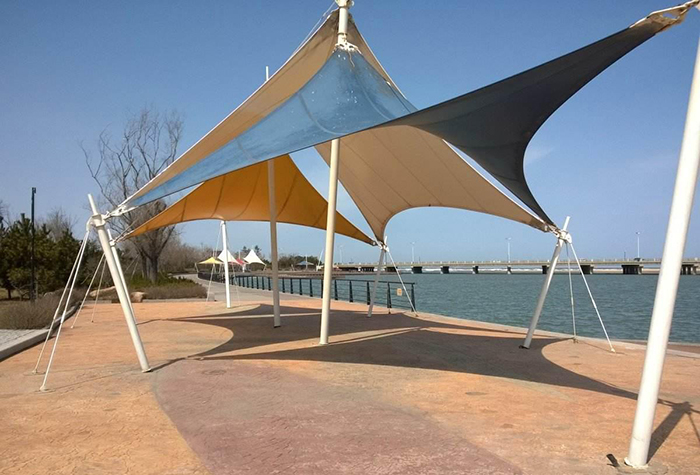一個(gè)城市的中心區(qū)反映一個(gè)城市的地理風(fēng)貌和民族風(fēng)情,同時(shí),也是一個(gè)城市文化發(fā)展程度的標(biāo)志。而景觀設(shè)計(jì)要求其具有廣泛的可讀性、雅俗共賞,既有超凡脫俗的藝術(shù)價(jià)值,又能使大眾喜聞樂見與大眾息息相通。膜結(jié)構(gòu)以其輕盈飄逸的造型、柔美并帶有力量的曲線和大跨度和大空間的鮮明個(gè)性和標(biāo)識(shí)性,應(yīng)用于城市小品設(shè)計(jì)中。專業(yè)景觀膜結(jié)構(gòu)廠家北京裕永和膜技術(shù)開發(fā)有限公司為您設(shè)計(jì)制作高質(zhì)美觀的景觀膜。